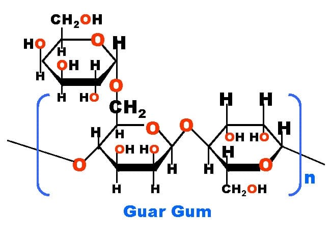گوارگام با سایر هیدروکلوئیدها مانند زانتان گام، کربوکسی متیل سلولز (CMC)، آگار، کاراگینان و نشاستهها قابل ترکیب است و خواص عملکردی آنها را تقویت میکند.