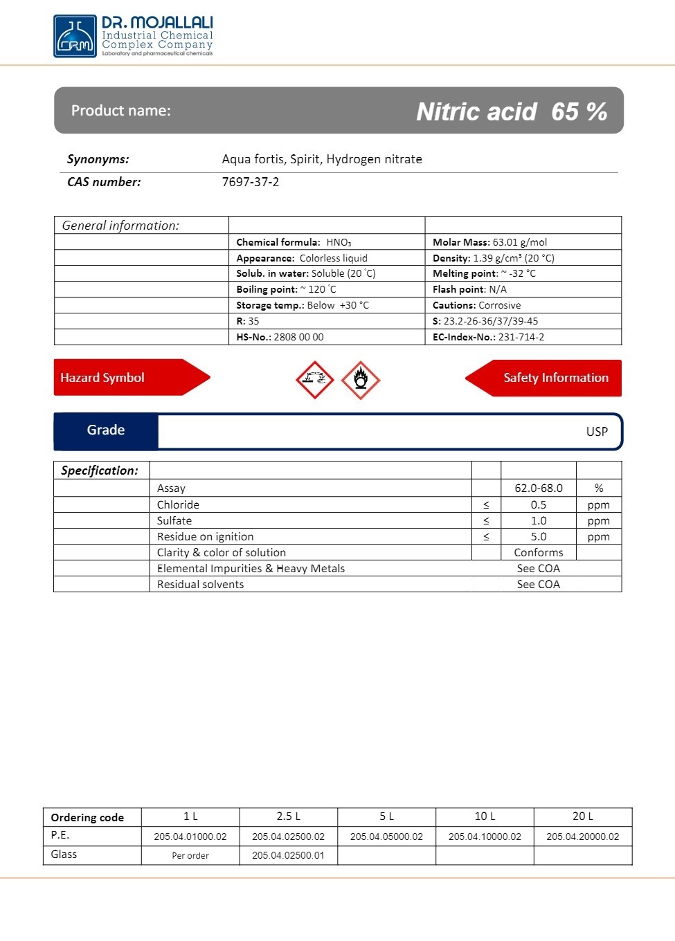1 دیدگاه برای اسید نیتریک 65% گرید Extra pure | دکتر مجللی